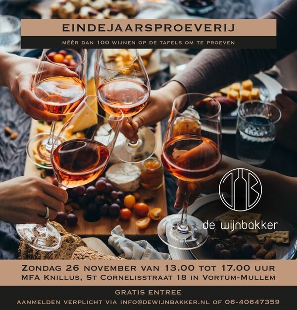 Kom je ook naar de Eindejaarsproeverij van De Wijnbakker?